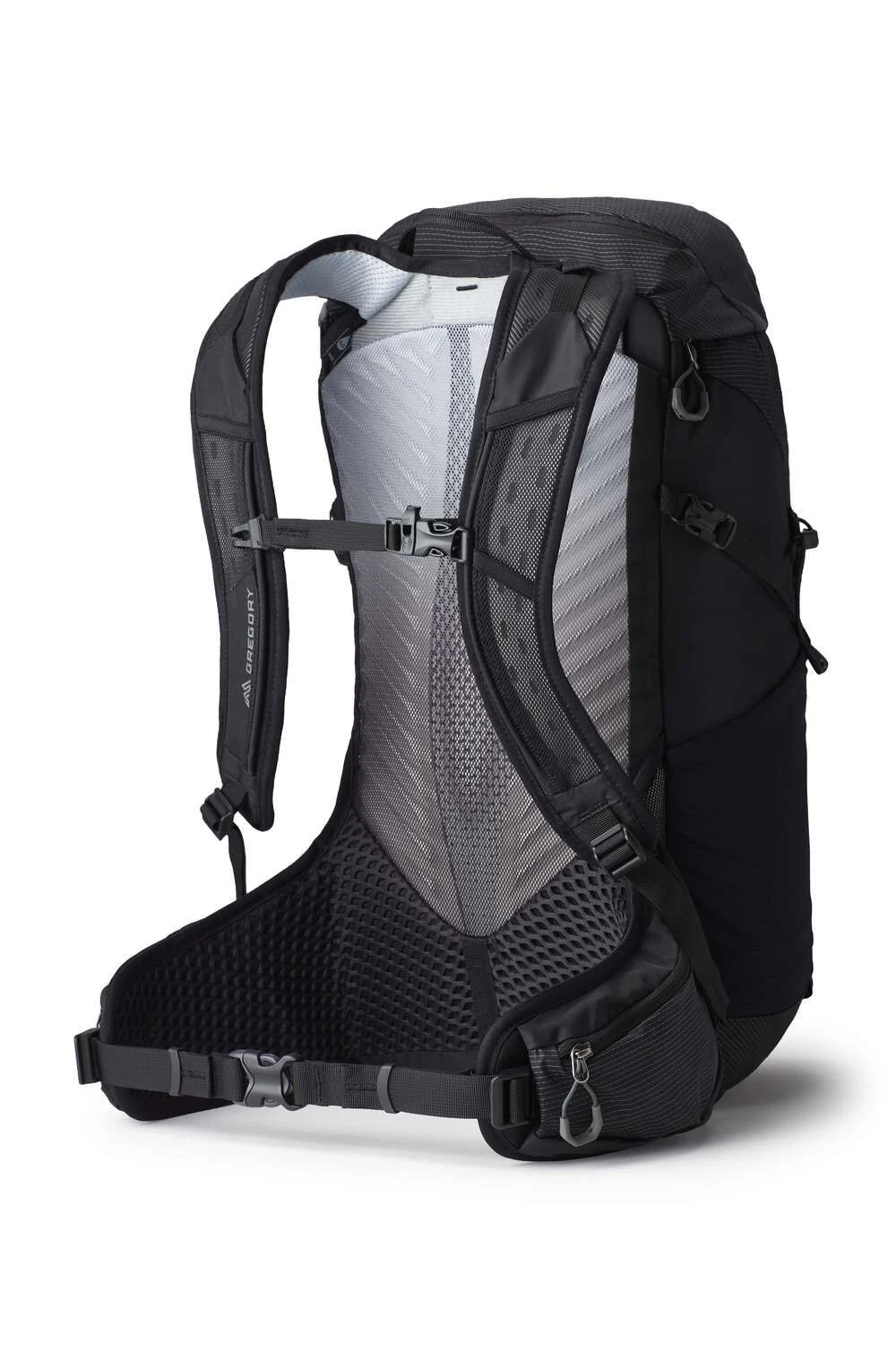 Elastische Schulter- und Hüftgurte dehnen sich je nach Körperform und bieten dir dadurch flexible Unterstützung beim Tragen deines Rucksacks. Die Hüftgurttaschen mit doppeltem Reißverschluss sind groß genug für dein Telefon, mit dem du jederzeit dein Abenteuer im Bild einfangen kannst. In den großen Seitentaschen aus Netzstoff kannst du mühelos große Isolierflaschen verstauen. Schaumstoffpolster mit aerodynamischen Rillen für minimalen Kontakt und bessere Luftzirkulation, damit dein Rücken kühler bleibt.