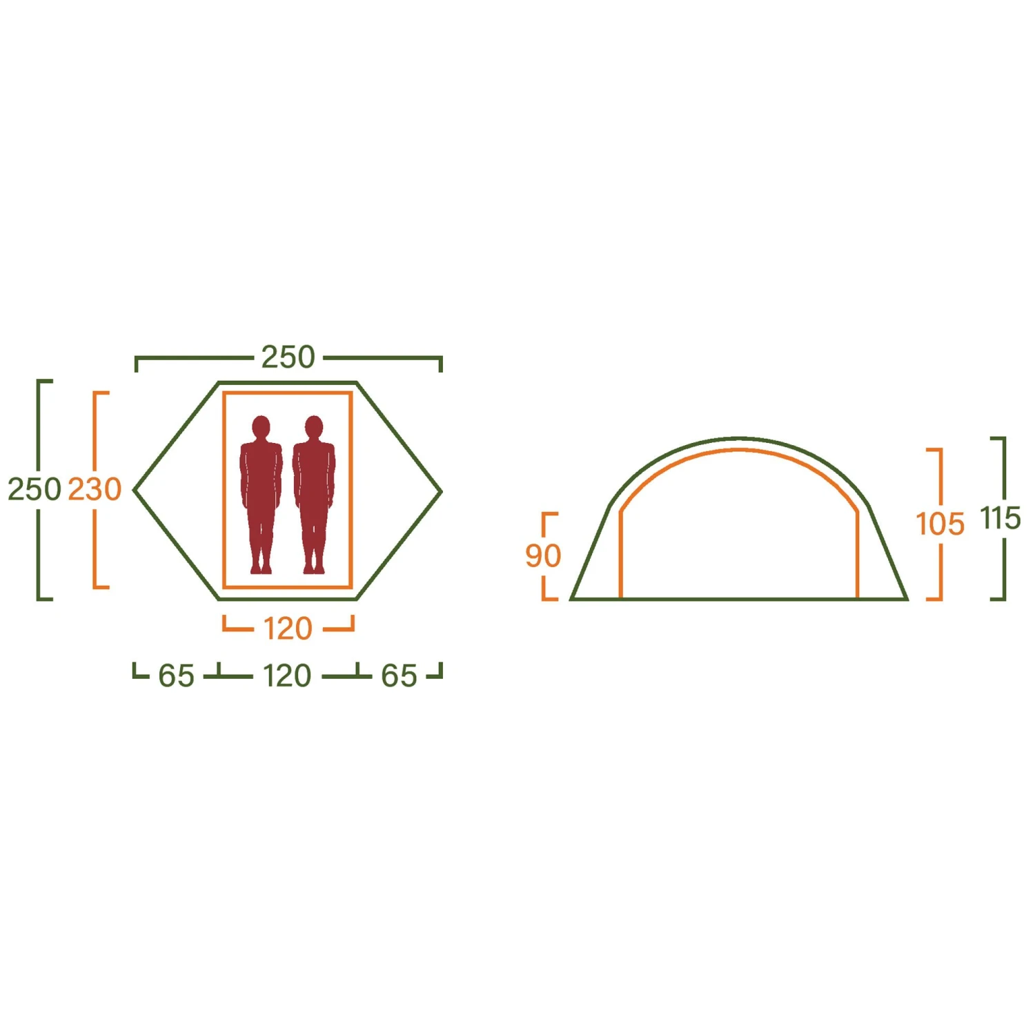 Das Helsport Reinsfjell Superlight 2-Personenzelt ist ein freistehendes Zelt mit zwei Türen und zwei Vorräumen. Ein Vorraum kann zum Aufbewahren der Ausrüstung verwendet werden. Der zweite Vorraum zum Beispiel zum Kochen. Der Zeltrahmen ist mit vorgebogenen Stangenabschnitten ausgestattet, welche die Wände steiler machen und den Innenraum und den Komfort erhöhen. Vier Belüftungsöffnungen am Außenzelt und zwei große Mesh-Paneele am Innenzelt sorgen für eine hervorragende Belüftung und minimieren die Kondensation. An warmen Tagen können Sie das Zelt vollständig „offen“ halten und trotzdem die Mücken fernhalten. Jedes Detail dieses Zeltes wurde mit Blick auf Leichtigkeit und Funktionalität entworfen. Nicht nur Stoffe, sondern auch Abspannspitzen, Zapfenschlaufen, Stangen und Lüftungsschlitze reduzieren das Gewicht auf ein ideales Minimum. Das Reinsfjell Superlight 2 ist die perfekte Kombination aus extrem geringem Gewicht und hohem Komfort.