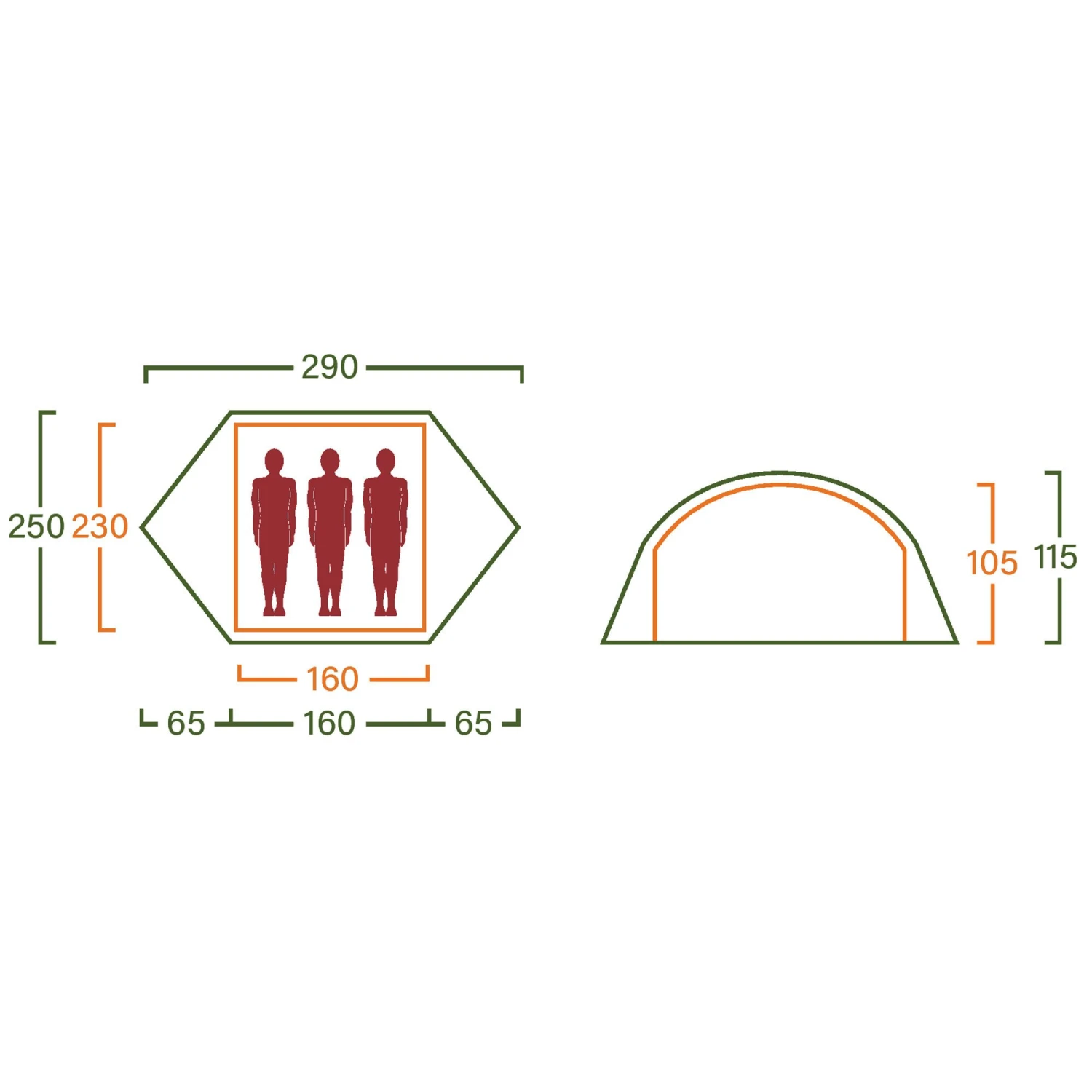 Das Helsport Reinsfjell Superlight 3-Personenzelt ist ein freistehendes Zelt mit zwei Türen und zwei Vorräumen. Ein Vorraum kann zum Aufbewahren der Ausrüstung verwendet werden. Der zweite Vorraum zum Beispiel zum Kochen. Der Zeltrahmen ist mit vorgebogenen Stangenabschnitten ausgestattet, welche die Wände steiler machen und den Innenraum und den Komfort erhöhen. Vier Belüftungsöffnungen am Außenzelt und zwei große Mesh-Paneele am Innenzelt sorgen für eine hervorragende Belüftung und minimieren die Kondensation. An warmen Tagen können Sie das Zelt vollständig „offen“ halten und trotzdem die Mücken fernhalten. Jedes Detail dieses Zeltes wurde mit Blick auf Leichtigkeit und Funktionalität entworfen. Nicht nur Stoffe, sondern auch Abspannspitzen, Zapfenschlaufen, Stangen und Lüftungsschlitze reduzieren das Gewicht auf ein ideales Minimum. Das Reinsfjell Superlight 3 ist die perfekte Kombination aus extrem geringem Gewicht und hohem Komfort.