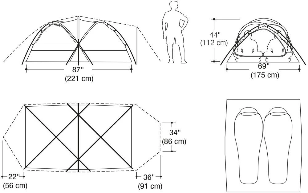 – Canopy Fabric:40d 100% Nylon Ripstop, Sil/PU 1800mm F/R