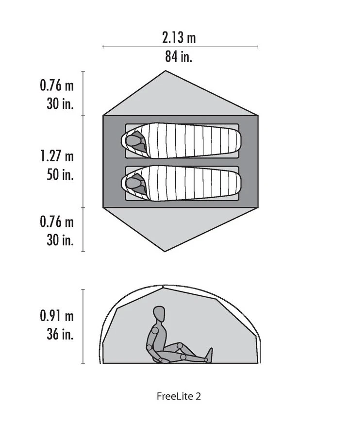 Trotz einer rechteckigen Grundfläche (ohne wie sonst übliche konische Seiten) und einer Giebelhöhe von 1 Meter (7,6 cm als zuvor) wiegt das FreeLite 2 für zwei Personen 226 g weniger als das Vorgängermodell. Die Zeltplane aus Mikromesh erlaubt ausgezeichnete Lüftung, ein wasserdichter Wannenboden schützt vor Nässe und Kälte. Zwei kurvenfreie Zelttüren sorgen für Ein- und Austreten, ohne den Partner beim Schlaf zu stören. Die Türen haben neue Reißverschlüsse, die haltbarer sind und sich mit einer Hand bedienen lassen. Zudem schließen sich die Reißverschlüsse immer an derselben Stelle, damit die Schieber auch im Dunkeln gefunden werden können. Neue Taschen für Geräte aller Art mit Kabelführungen an den Ecken für Kopfhörer und Ladekabel. Ausrüstungsablage über Kopfhöhe ist ideal für Stirnlampen, Sonnenbrillen und mehr.