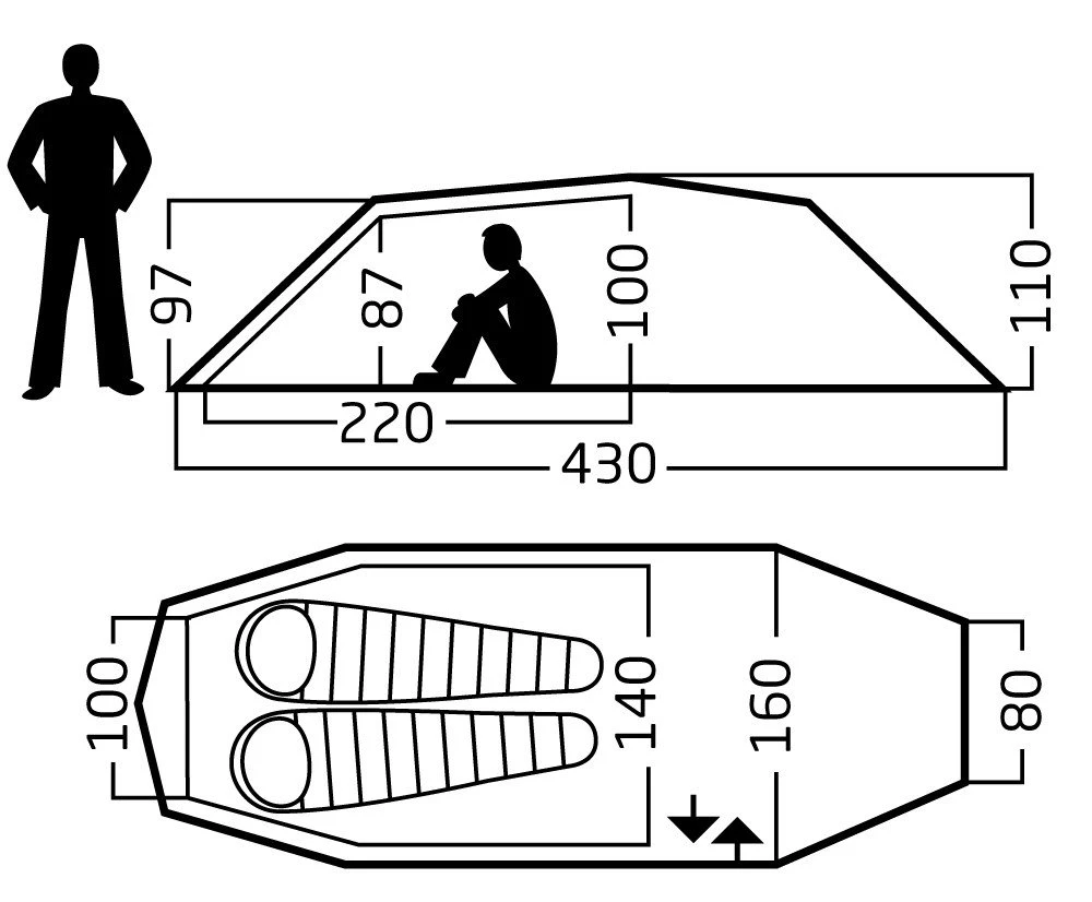 Abmessungen Innenzelt: 220 x 145 x 100 cm