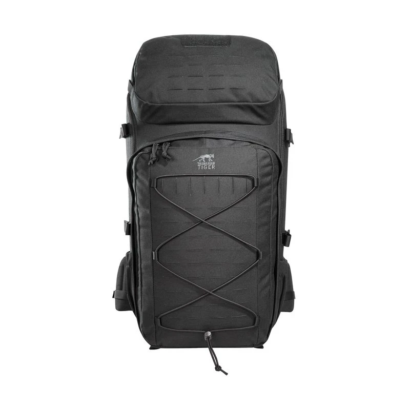 – Zwei Fronttaschen mit Organizer, Netztaschen und MOLLE-Klett
