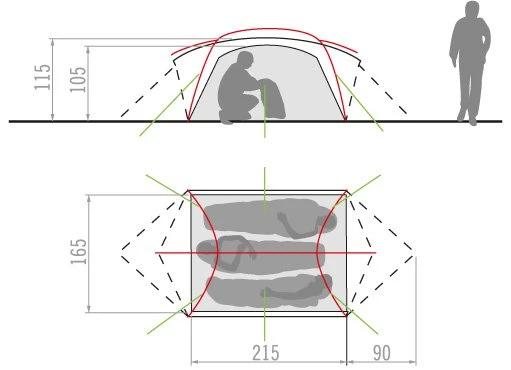 • Außenzelt: 100% Polyamid; 40 D Ripstop both sides Silicone coated 3.000 mm;
