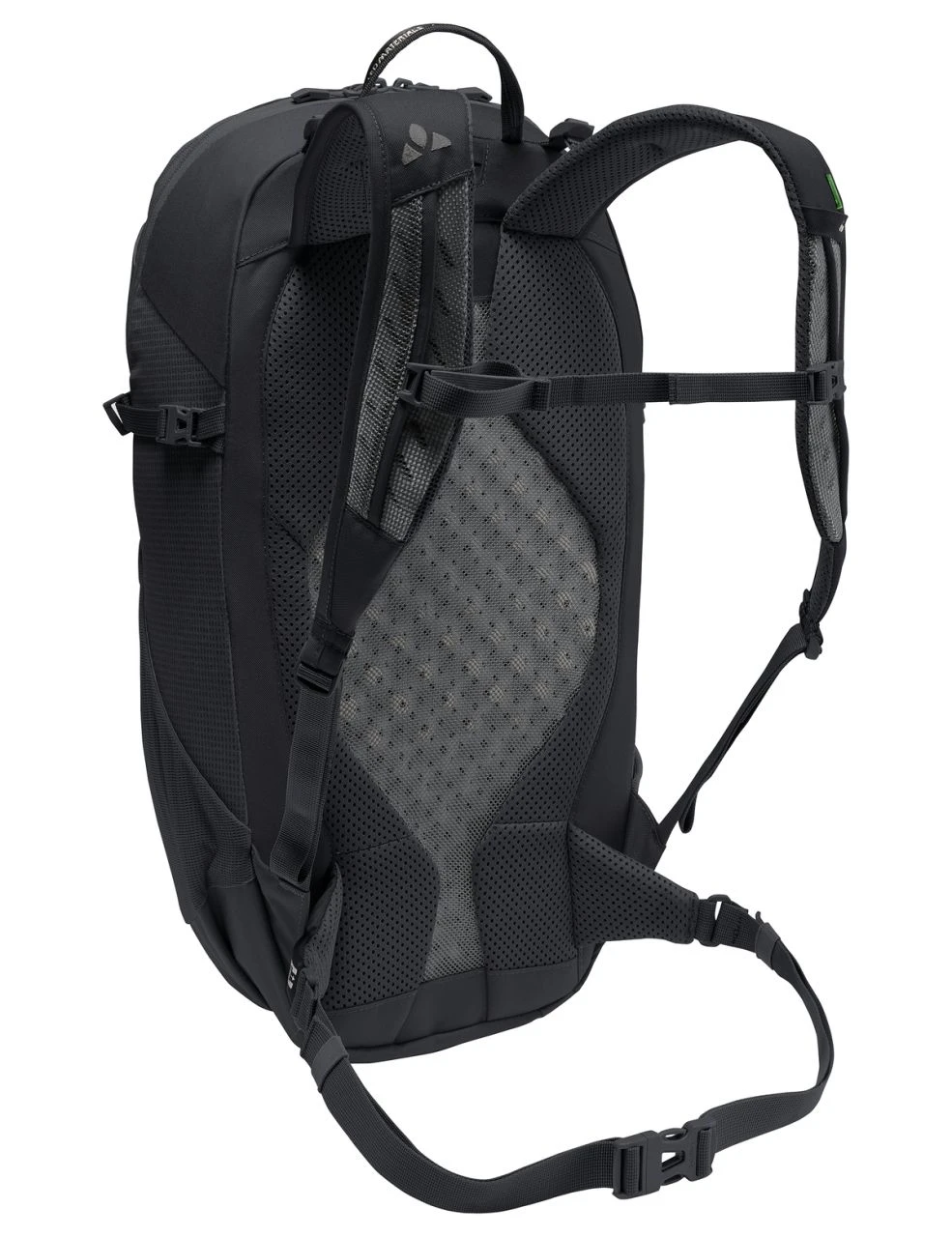 Modern und alltagstauglich – der Toploader Rucksack Neyland Zip 20 mit abnehmbarem Hüftriemen. Dieser multifunktionelle Rucksack eignet sich fürs Wandern und Klettersteige genauso wie für Uni und Stadtalltag. Das innovative Rückensystem mit den strukturierten Schaumstoffmodulen sorgt für eine gute Belüftung und gleichzeitig für einen stabilen Rückenkontakt. Die Schulterträger sind weich gepolstert und sorgen für einen guten Tragekomfort. Die integrierte EMP Platte (ergonomic movement panel) unterstützt die natürliche Rückenbeugung beim Aufstieg oder auf dem Fahrrad und verhindert, dass das Gepäck auf den Rücken durchdrückt. Ausgestattet ist der vielseitige Wanderrucksack mit einem großen Hauptfach und einem separaten Trinksystemfach, das alternativ auch als Laptopfach (bis 15″ Zoll) verwendet werden kann. Die großzügige Reißverschluss-Fronttasche hat zusätzlich ein gepolstertes Handyfach. In die seitlichen Stretch-Taschen passen Getränk oder Mütze. Wanderstöcke können an der Stockbefestigung befestigt werden und die seitlichen Kompressionsriemen dienen als weitere Gepäckfixierung. Weiteres Gepäck kann in die offene Stretchtasche auf der Front verstaut werden. Eine Regenhülle ist inklusive. Der Neyland Zip 20 wurde aus überwiegend recyceltem Material hergestellt und ist außerdem klimaneutral: Die Emissionen aus Materialien, Herstellungsprozess und Versand wurden ganzheitlich ermittelt und systematisch reduziert. Aktuell nicht vermeidbare Emissionen wurden vollständig über die unabhängige Non-Profit-Organisation „myclimate“ kompensiert. Das VAUDE Green Shape-Label steht für ein umweltfreundliches, funktionelles Produkt aus nachhaltigen und bluesign® zertifizierten Materialien.