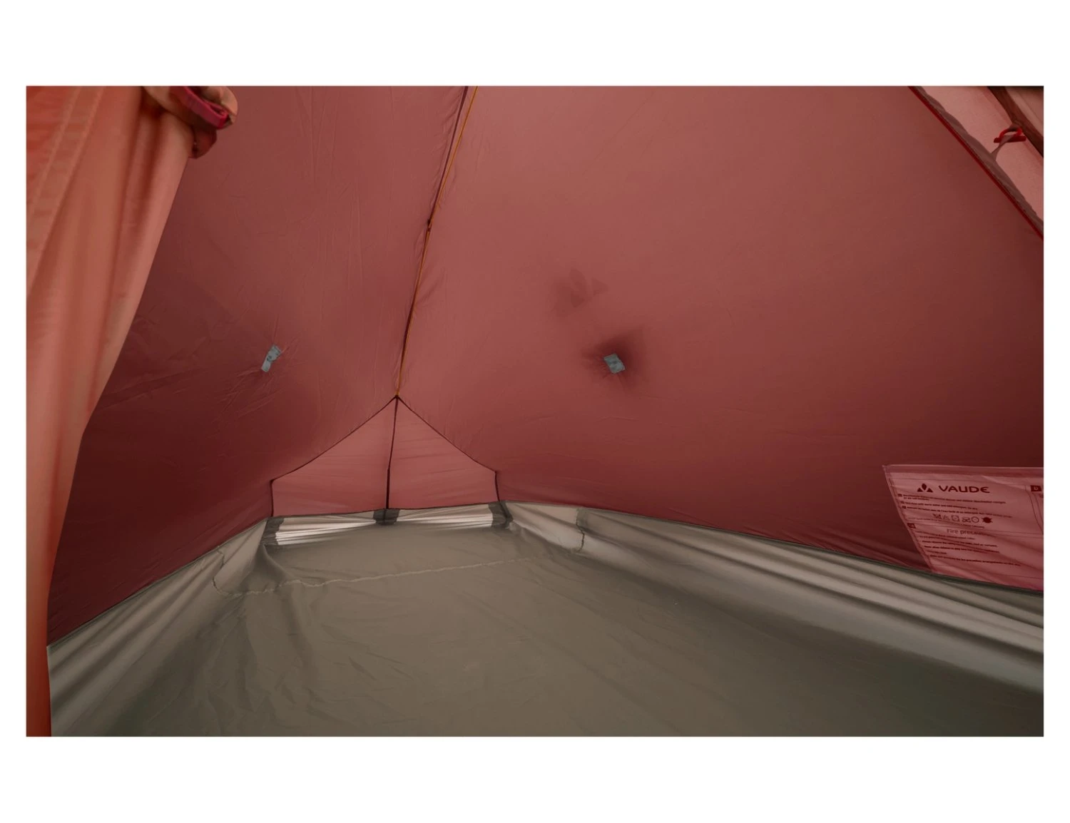 optimierte Raumausnützung durch abgewinkeltes Gestänge im Fußbereich und zusätzlichen Pins im Außenzelt